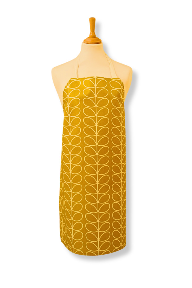 Orla Kiely Linear Stem Dandelion Adult Oilcloth Apron – a fabulous oilcloth apron in the iconic Orla Kiely Linear Stem design. Wipe-clean oilcloth aprons are the unsung heroes of the kitchen, crafting room, and beyond. These versatile garments offer both style and practicality, making them a must-have for anyone who values cleanliness and convenience.