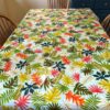 Tropical Fall Azure Gloss Oilcloth Tablecloth. This very bright and vibrant tropical themed oilcloth tablecloth will certainly bring brightness to any dining room. It would look amazing in the outdoors too and would be sure to brighten up any BBQ or garden party!