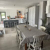 This modern oilcloth tablecloth shows off white leaf shaped designs on a slightly mottled slate grey background. It is a charming and practical addition to any dining room or outdoor space. Featuring a strong and stunning colour palette this wipe clean oilcloth tablecloth is a visually appealing pattern that adds a touch of elegance to your table setting. Its smooth surface is easy to clean, making every meal a delightful experience. Elevate your décor with effortless style.