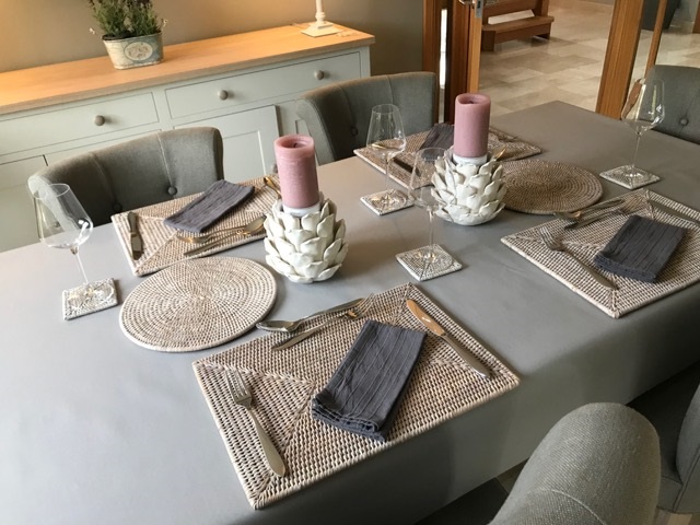Regency Dove Plain Matt Oilcloth Tablecloth. Elevate your table with this very stylish plain oilcloth tablecloth which effortlessly combines style and practicality. Its sleek design adds a touch of elegance while the wipe clean surface ensures easy maintenance. Perfect for any occasion.